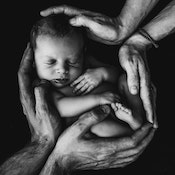 Infine, la nascita e il lungo guardarsi negli occhi tra mamma e bimbo. In silenzio, in penombra. Nessuno dei due sorride: hanno lo stesso sguardo stupito, permeato di domanda. Totale stranezza, totale sacralità.