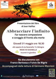 Il libro, che la Pendragon ha da poco pubblicato in Italia, è stato tradotto da Silvana Buzzi, praticante di lungo corso proprio ad ASIA; le pagine di Abbracciare l'infinito propongono una splendida summa degli insegnamenti che l'autrice ha colto nella vicinanza con il fine vita: coraggio, compassione, consapevolezza che la Halifax trasmette al lettore con eccezionale intensità.