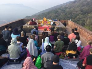 2. Lo stesso gruppo medita al Picco dell'Avvoltoio, là dove si tramanda essere stata esposta dal Buddha la sapienza più profonda.