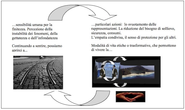 Nei capitoli precedenti abbiamo introdotto l’esperienza di sentire la finitezza della nostra condizione umana ed ecologica come la base della possibilità di svuotare le rappresentazioni del mondo e di noi stessi, e di aprirci all’instabilità dei fenomeni e alla consapevolezza del pericolo di distruzione che corre tutto il pianeta.