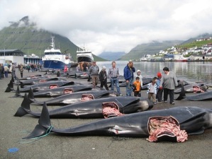 Le isole Faroe, ora indipendenti dalla Danimarca, massacrano ogni anno per "tradizione" centinaia di delfini della specie Calderon, conosciuto anche come globicefalo nero o balena pilota, specie molto mansueta che si avvicina agli umani per giocare.
