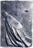 Nel bassorilievo l’anziano Pontefice viene raffigurato assorto nell’ultima preghiera mentre vive il trapasso, gli abiti, la posizione del corpo lo fanno immaginare ancora in vita ma il volto così assorbito mostra ciò che è trasceso. L’essenzialità con cui Manzù è riuscito a rappresentare l’uomo-Pontefice nell’antica metafora del “varcare la soglia” è davvero toccante.